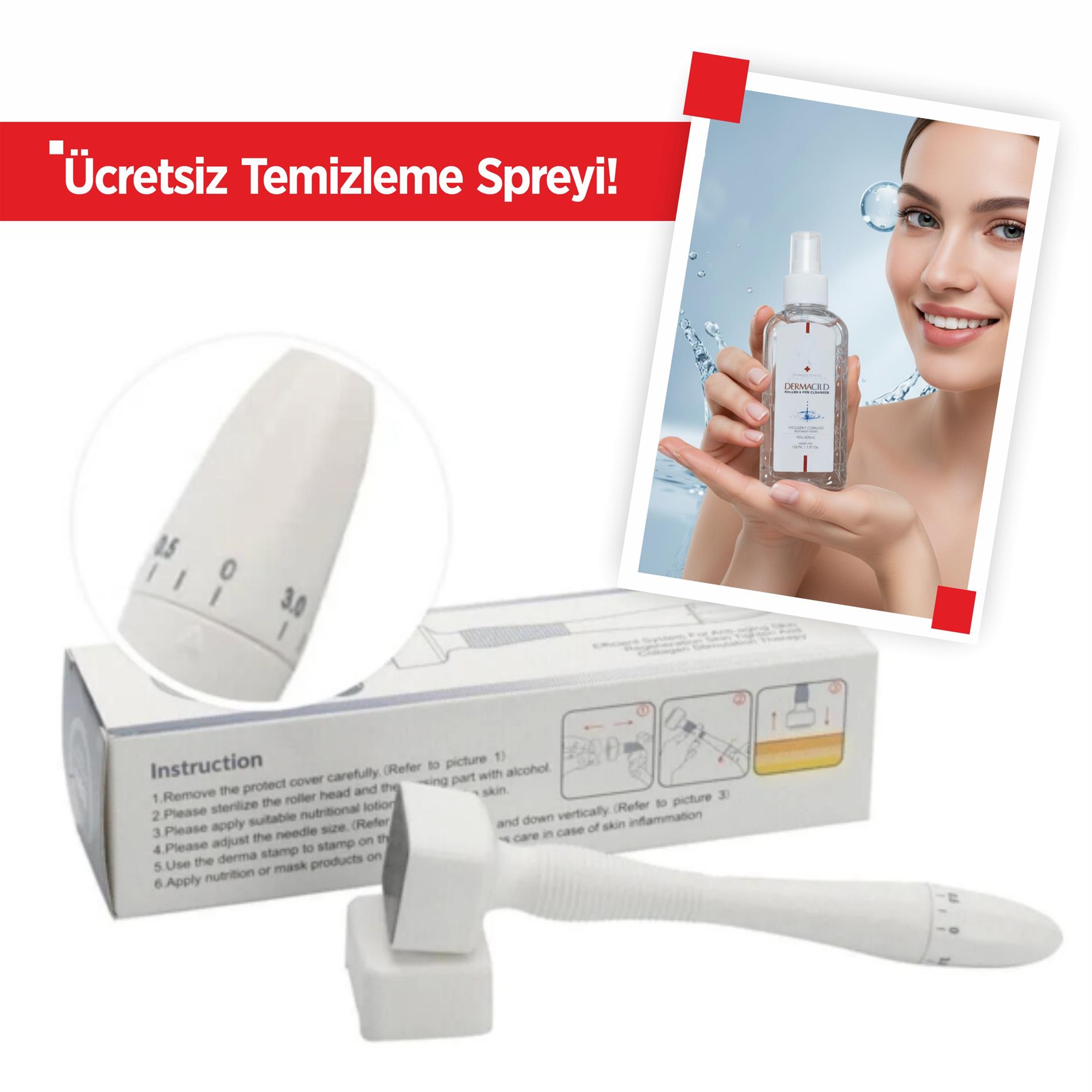 Ürün ve hizmet çok iyi. Yanında dezenfektan, sabun, açıklama her şey var. Dermaroller yüzümü çok acıtıyordu. Bunla dermarollera göre çok az acı duydum. Gerçekten iğneleme yaptığımı anladım, yüzüm kıpkırmızı oldu ama çok az acıdı. Çok hoş bir duygu. Ardından kapağına dezenfektan koyup aleti kolayca dezenfekte ettim. mm ayarlama kısmı çok kaliteli sayılmaz ama işini yerine getiriyor, yumuşak kullanmalı orasını. Ambalajlama da çok güzeldi. İlk izlenimlerim böyle. Çok teşekkürler.